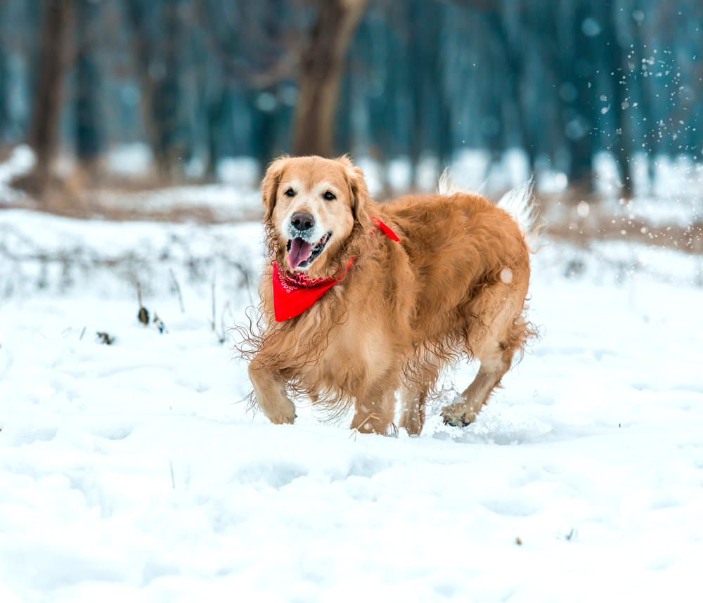 Snow can cause poor visibility, and if your dog is off lead it could lead to your dog getting lost. If the snowfall is particularly heavy, there may be deep patches or holes and unsafe areas. Keep your dog on lead to prevent them from falling and potentially injuring themselves.